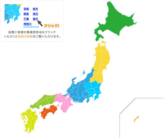 業務用エアコン工事の対応地域については県名をクリックし、ご確認いただけます。